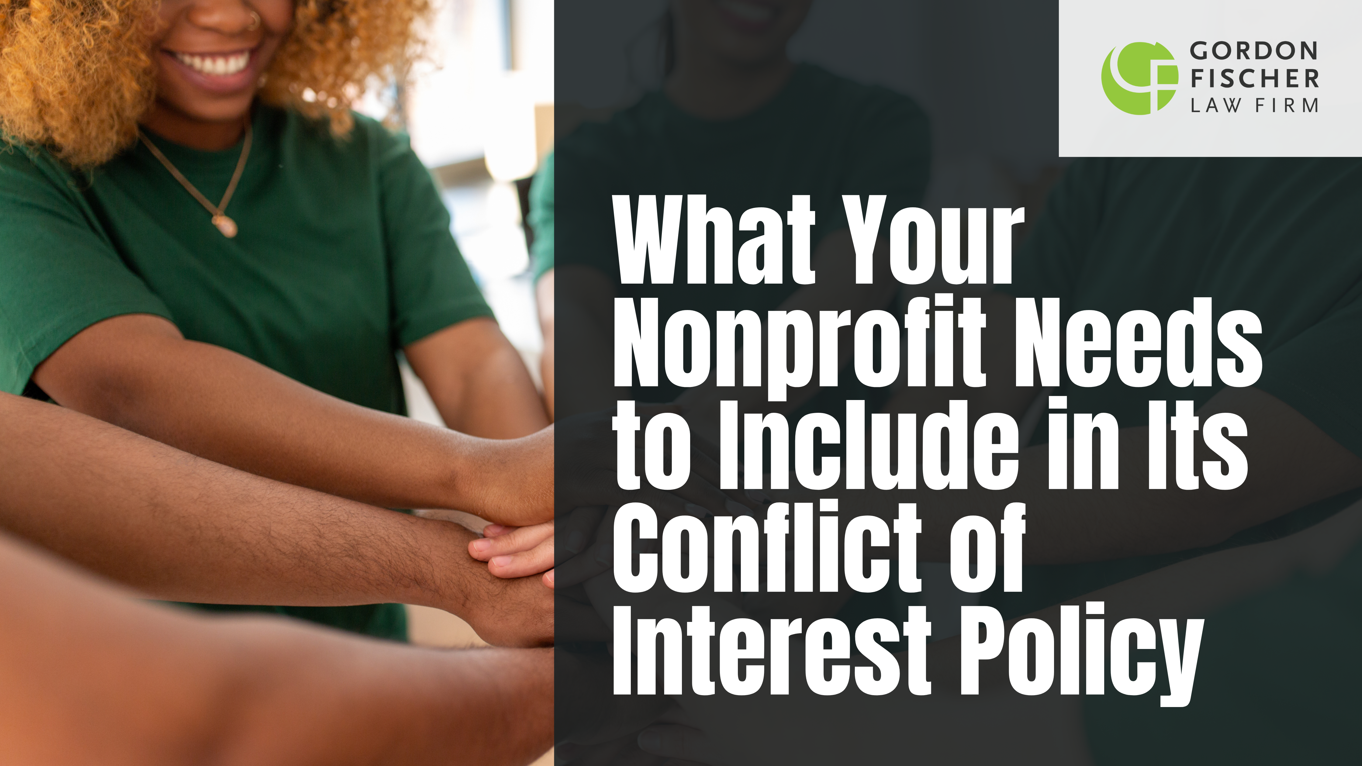 The Gordon Fischer Law Firm works with nonprofits to draft, revise, and tailor the ten governance policies referenced on IRS Form 990 — including Conflict of Interest Policies — to fit your organization’s mission and operations.